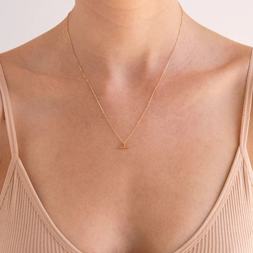 The Linda Tahija Mini T-Bar Necklace is perfectly minimal, featuring a delicate chain made with nickel-free sterling silver and a mini t-bar pendant.
