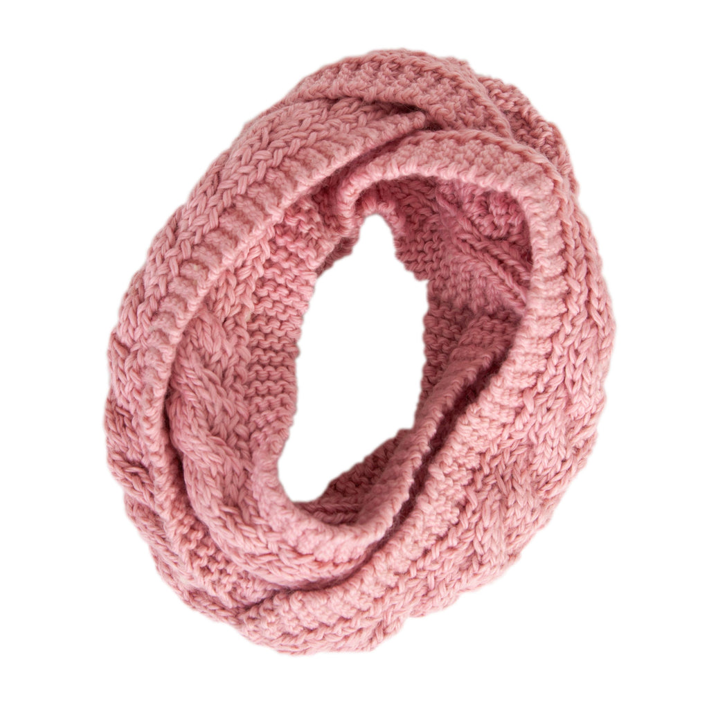 Hand-knitted infinity scarf with a cable knit pattern that comfortably loops around twice to give a lovely warm hug to any outfit.