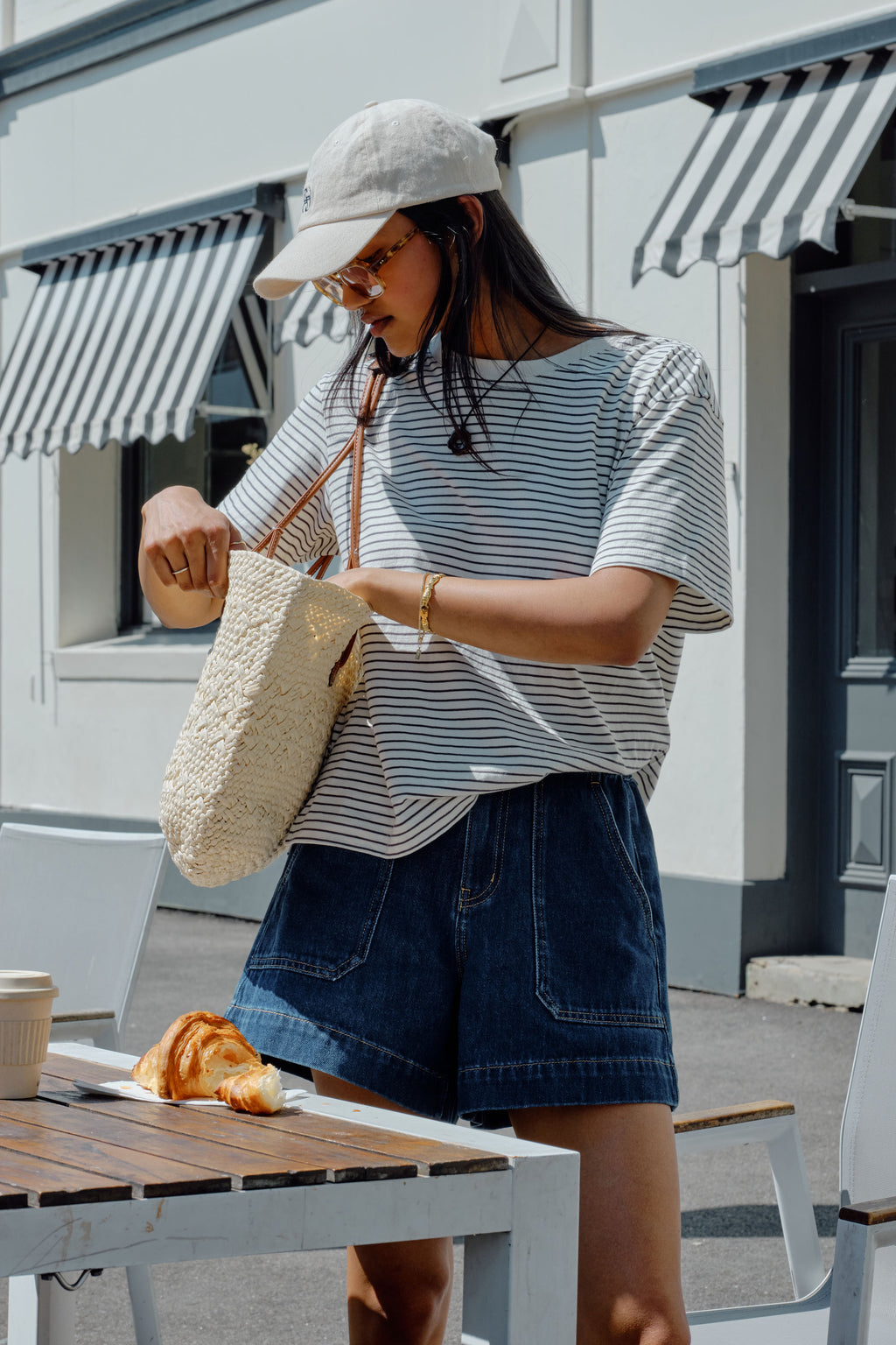 Stevie Slouchy Tee | Milk With Phantom Fine Stripe