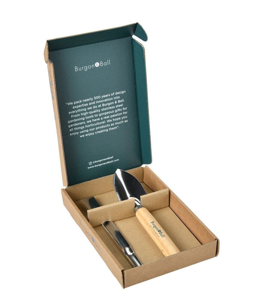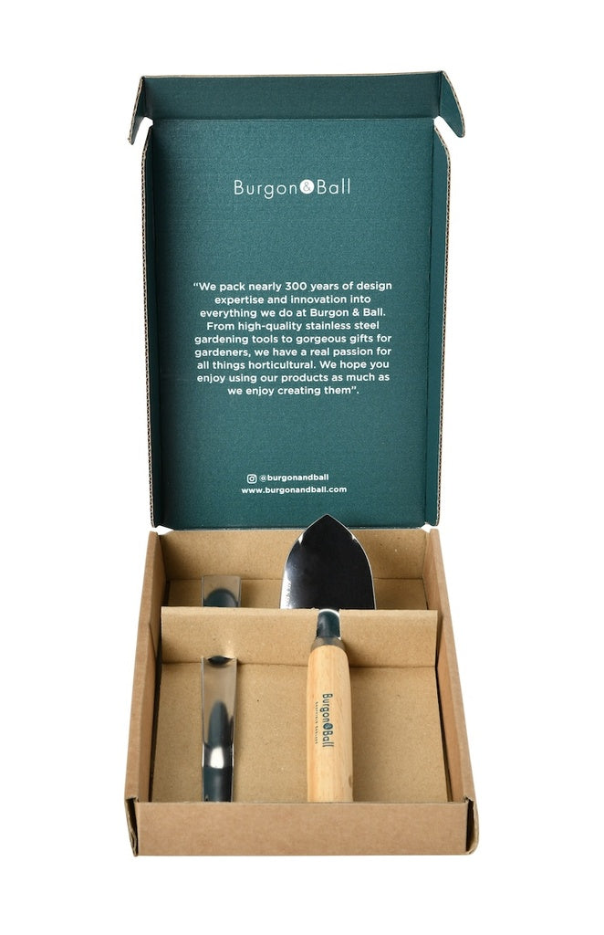 Burgon and Ball's Perfect Potting gift set contains two of their most popular tools for potting shed tasks: a seedling widger and a cell tray trowel.
