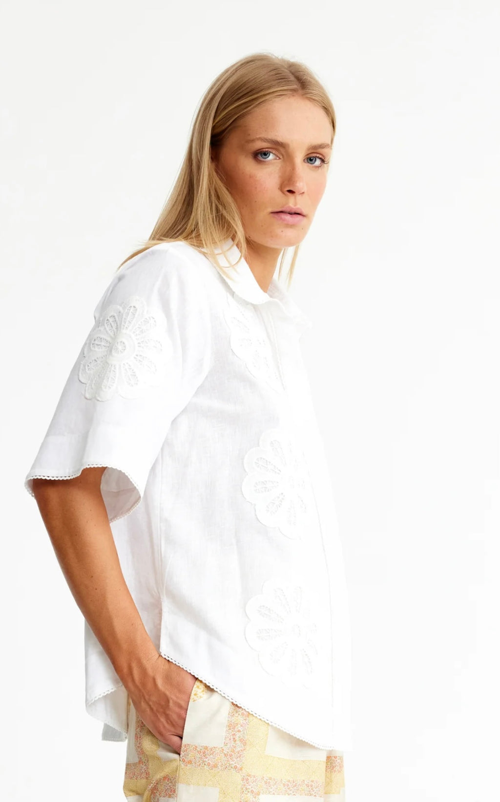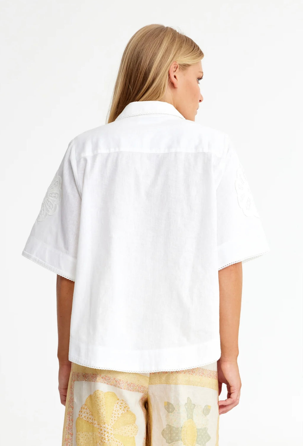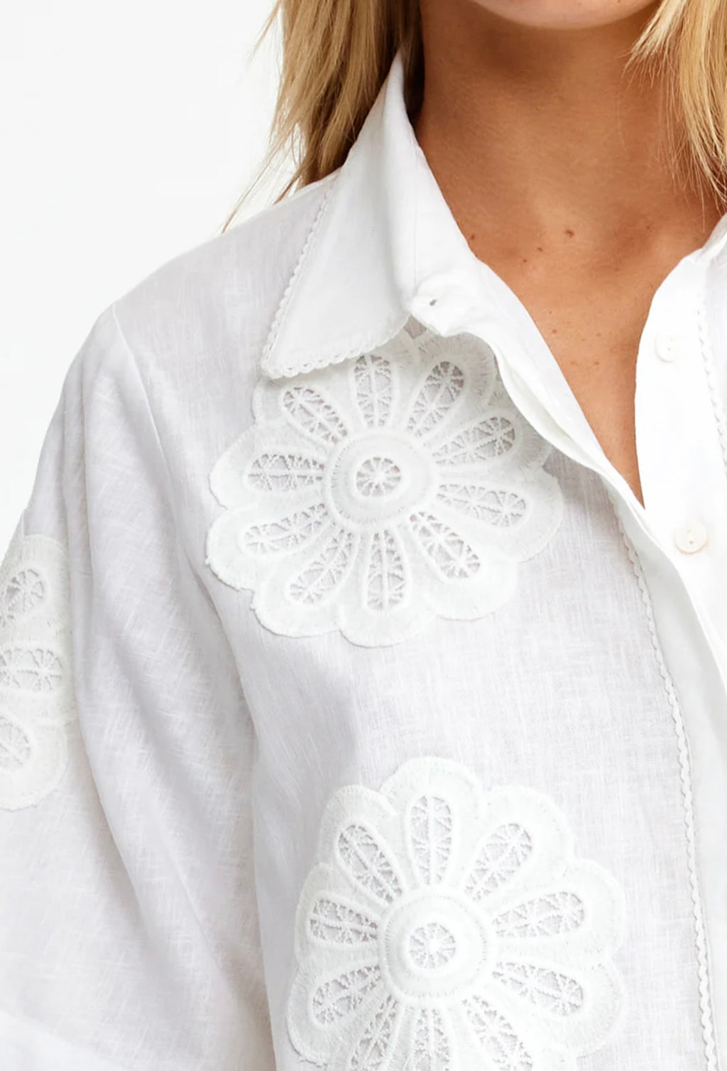 Crisp, classic, and effortlessly chic- the Lipizzaner White Shirt by Binny is a wardrobe staple with a hint of signature flair. Crafted from soft, breathable cotton, this timeless shirt features subtle feminine detail, button-through front, and cuffed sleeves. Perfectly polished yet easy to wear.