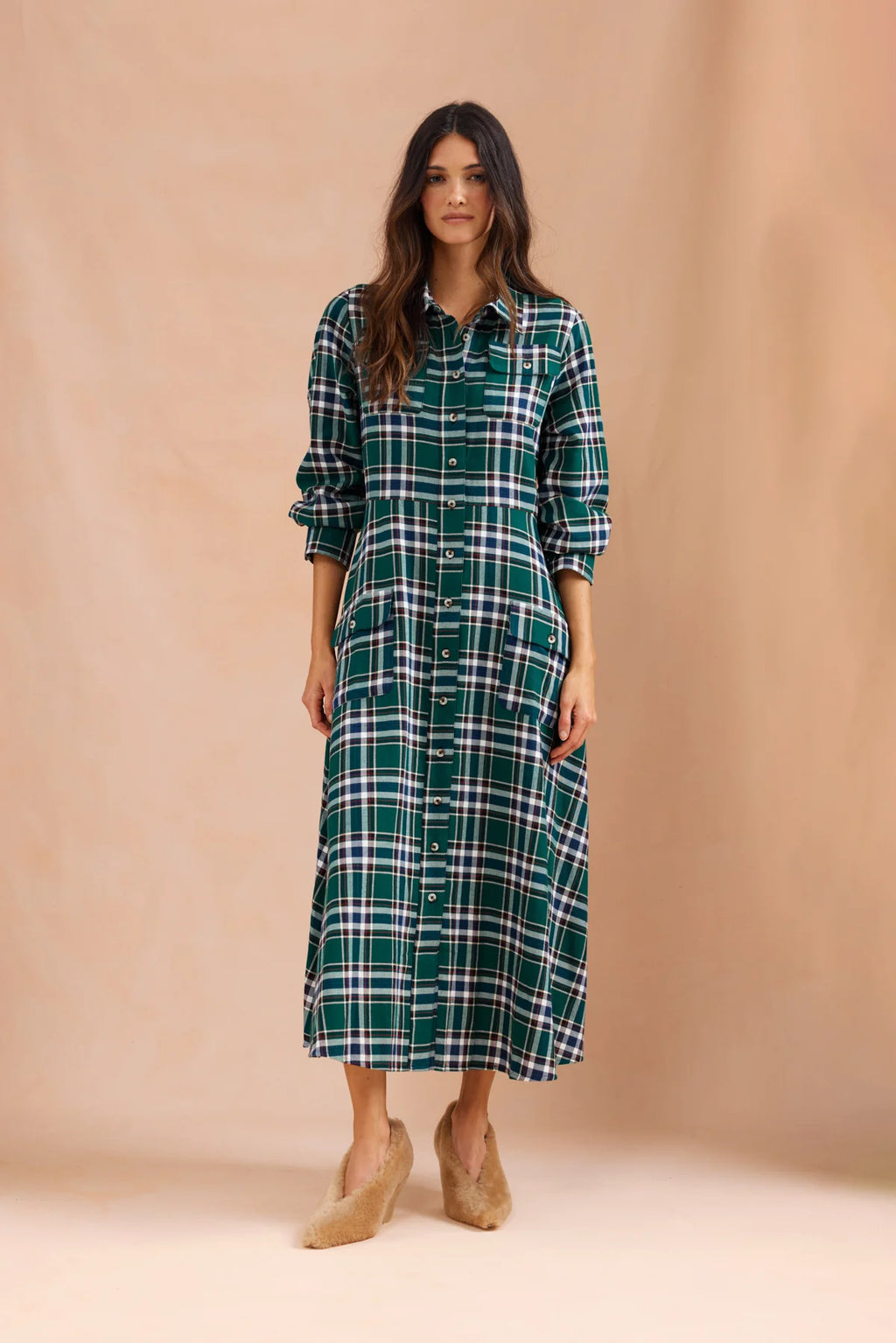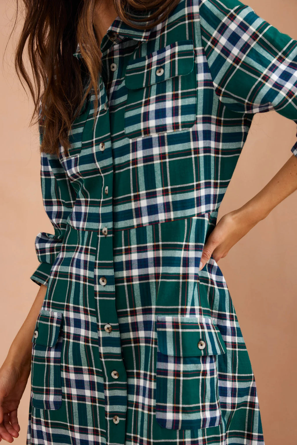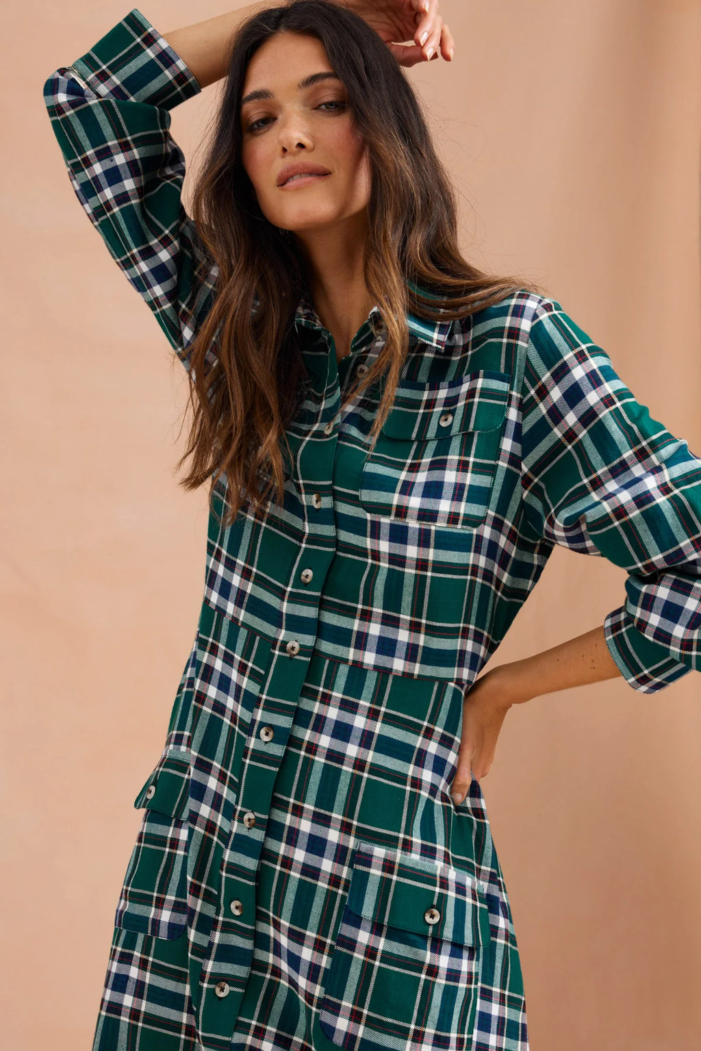 The Moggs Creek dress brings lumberjack energy - minus the axe, plus a waist tie. Cut from brushed cotton flannel, it’s part country picnic, part campsite chic. Tortoiseshell buttons, oversized pockets and soft structure in one Binny's most classic cuts. For days when you’re craving comfort but still want to look like you’ve got your flannel act together. Just like wearing jamys all day but chic.
