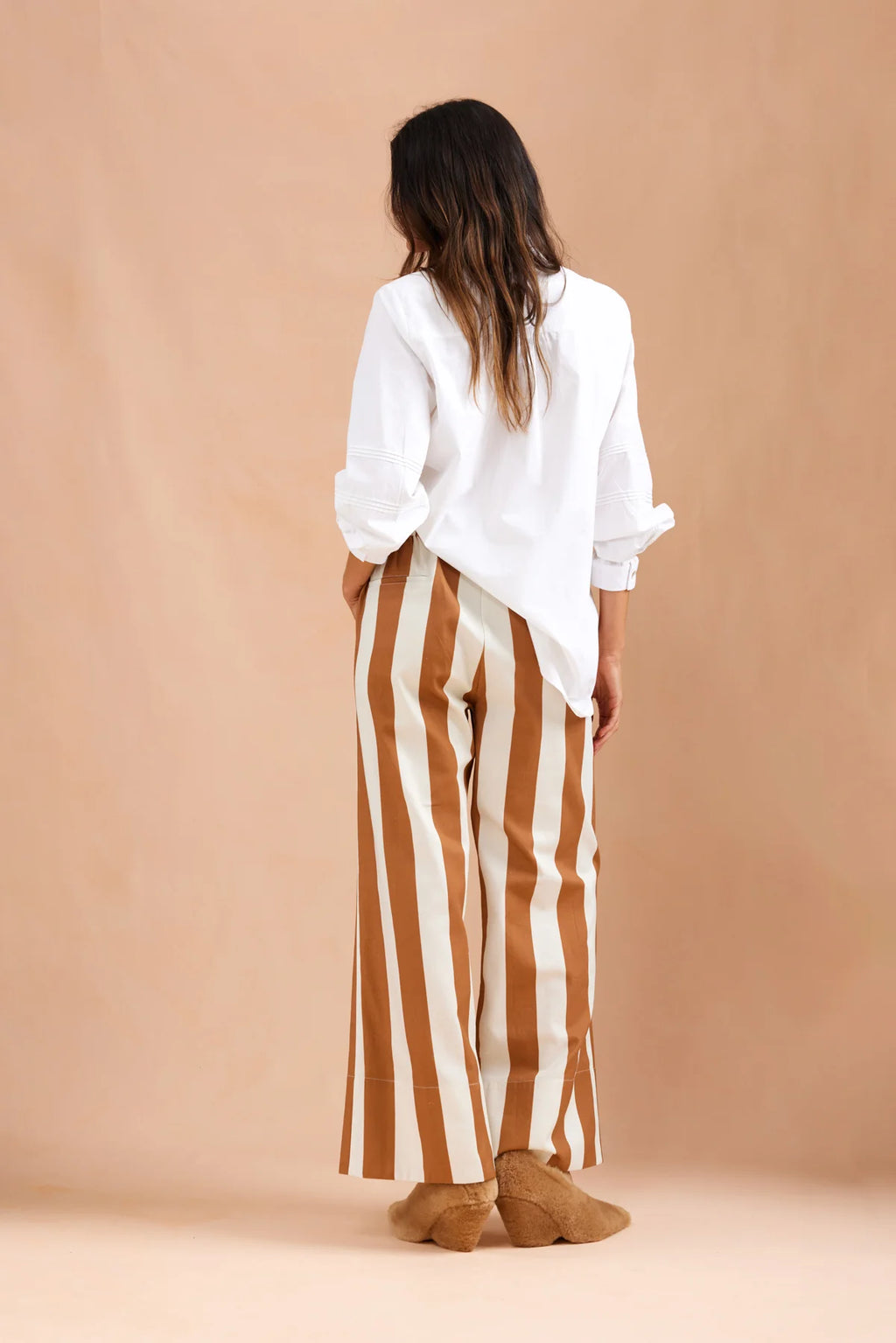 On Trend mocha striped makeover perfect with the matching Dunkeld blazer or our beautiful cream Twelve Apostles fisherman sweater. Flattering flat front & elasticated back for the degustation/ road trip/pit stop. A straight leg & a bold stripe brings a first-class statement. Get the royal treatment at The Royal Mail.