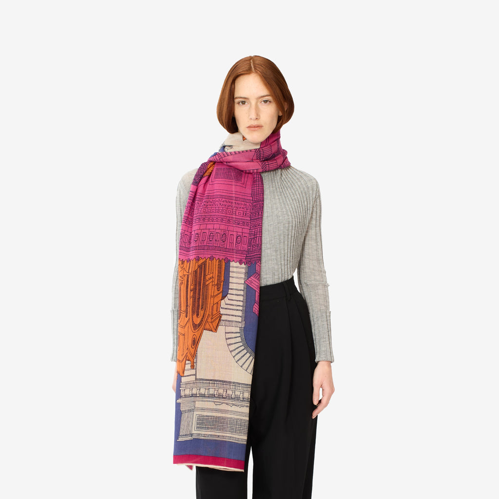 The Paris Wool Scarf in vibrant Fuchsia from Inoui Editions measures a generous 100x190cm, offering both style and warmth. Expertly crafted from 100% fine wool sourced in India, this scarf combines luxurious softness with exceptional quality. Its rich color adds a sophisticated pop to any outfit, making it a versatile accessory for cooler days. Whether draped elegantly or wrapped snugly, this scarf enhances your wardrobe with timeless elegance and comfort.