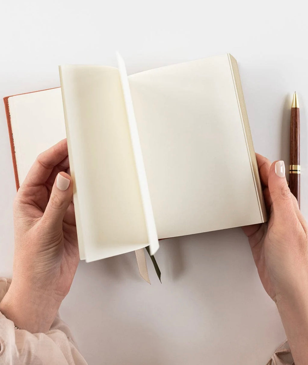 The beautiful linen bound journal features gold foil printing, gold gilded edges, decorative internal covers, satin ribbon markers and two hundred heavyweight pages printed on chlorine-free pure wood fibre paper.