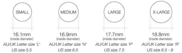 Available sizes: Small, Medium, Large (see ring size dimensions)