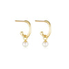 Pearl Charm Base Hoop Earrings | Gold