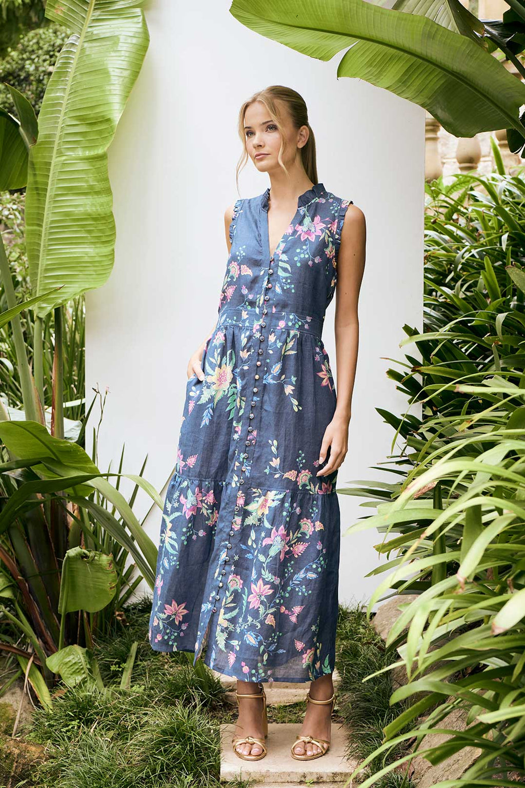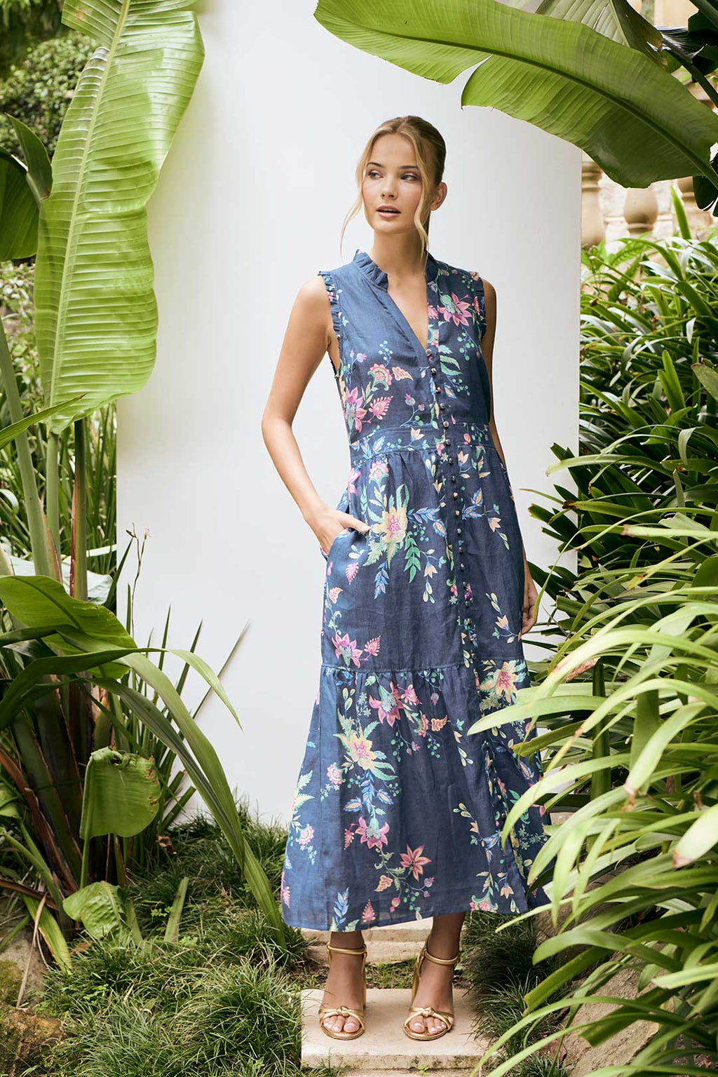 The Ayla Flora Maxi Dress in 100% hemp floral by Australian brand The Dreamer Label is a must-have for your Spring wardrobe. Made from an eco-conscious and sustainable hemp fabric it features a high ruffle-detail collar, a deep v-neck and buttons down the front. A classic style that's perfect to pair with your flats or dress it up with heels. Easy-to-wear it's a chic and comfortable dress for warm Spring days.