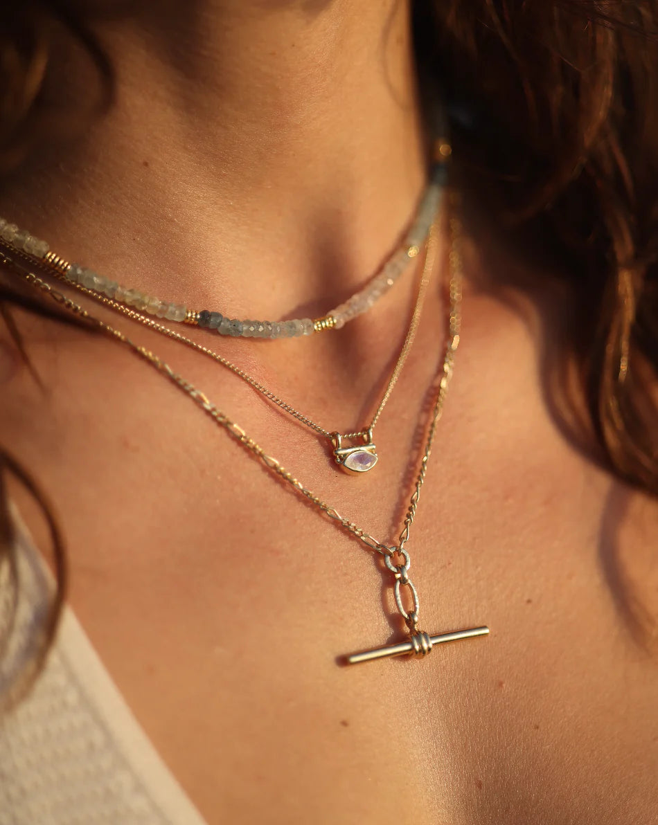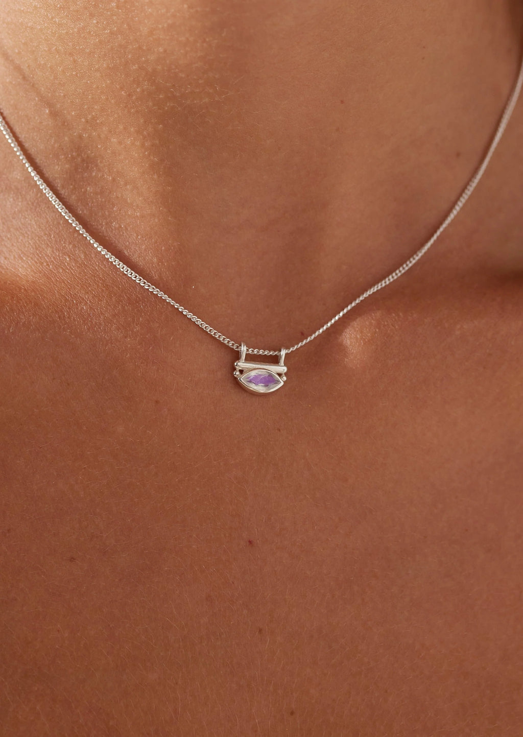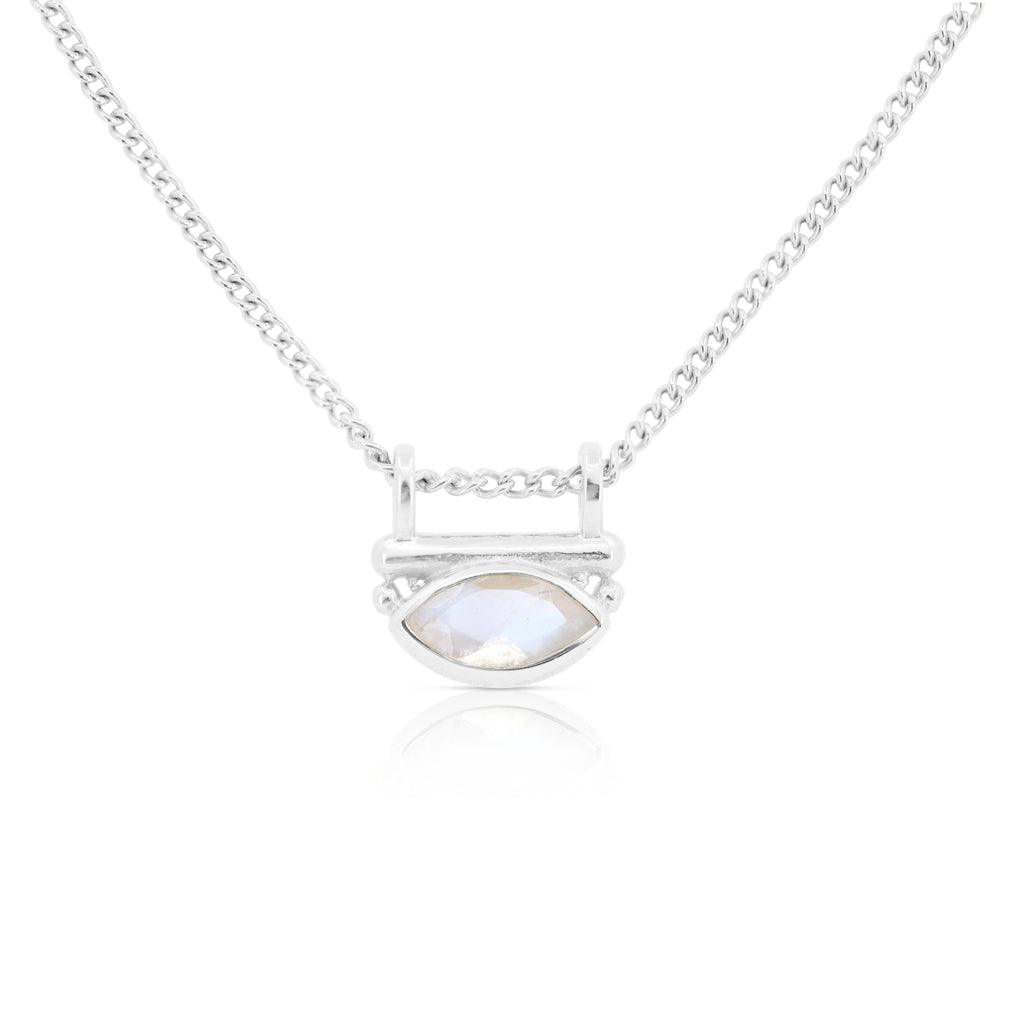 The Nyra Necklace is a necklace adaptation of ToniMay's best selling Nyra stacking band. This stunning necklace features a stunning hand cut marquise stone bezel set in a bar style setting that anchors to the chain at two points.