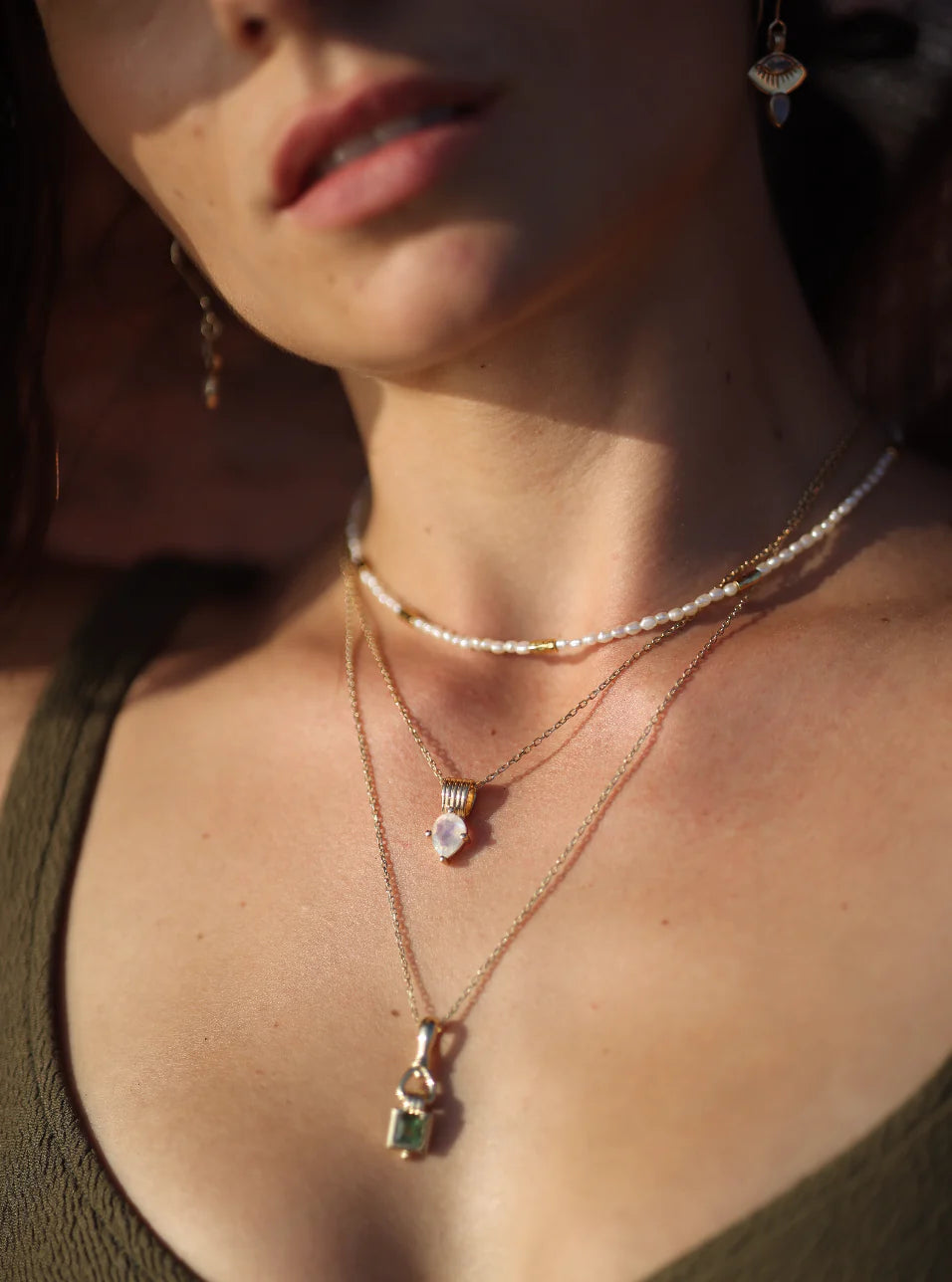 • Please avoid ongoing exposure to water through showering/swimming as this can cause damage to the wire used on the necklace